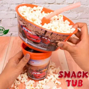 2-in-1 Snack Tub with Tumbler and Straw, BPA-Free Super Plastic Cartoon Character