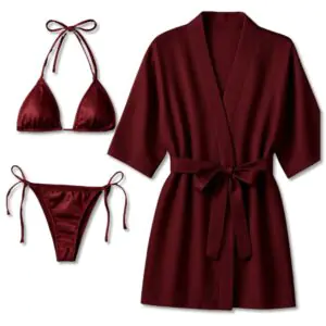 3-Piece Swimwear & Lounge Set for Women, Monokini with Bikini & Sheer Robe, Stylish Beach & Pool Outfit, Free Size 28–38, Available in Maroon, Black, Blue, Pink & Grey