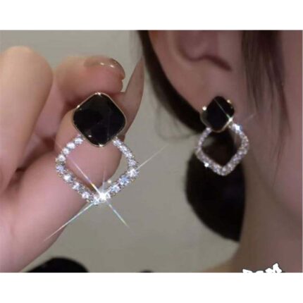 Zircon Butterfly Style Earrings for Women Elegant Studs with super Black Enamel & Sparkling Stones in 2 Golden and Silver Finishes